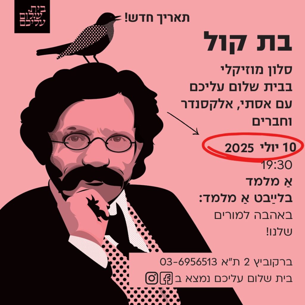 המפגש השישי והאחרון לשנה זו של הסלון המוזיקלי שלנו, יתקיים ביום ה, 10 ביולי, בשעה 19:30. בסיומה של שנת לימודים מהנה, משכילה ומפרכת, אנחנו רוצים להכיר תודה למורים של בית שלום עליכם בערב חגיגי שכולו שירי מורים ומלמדים!